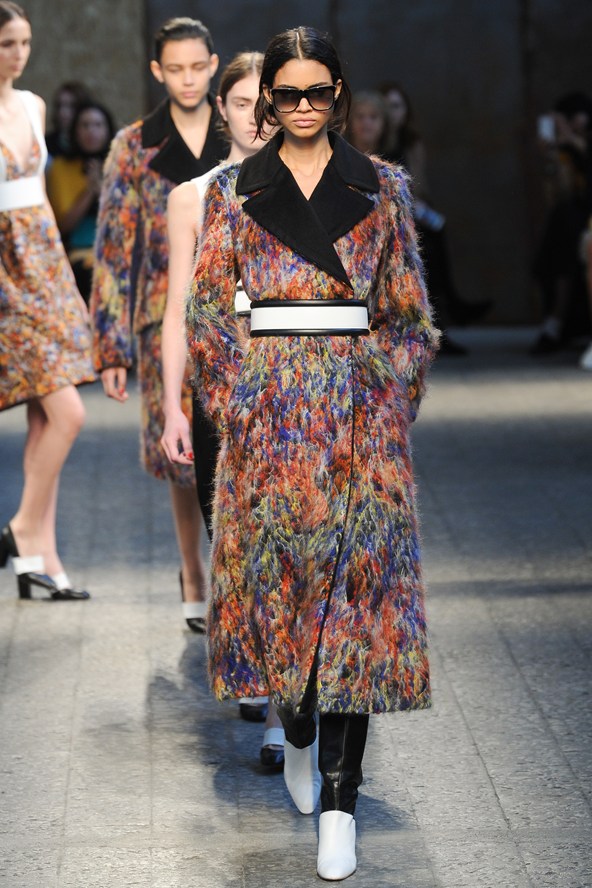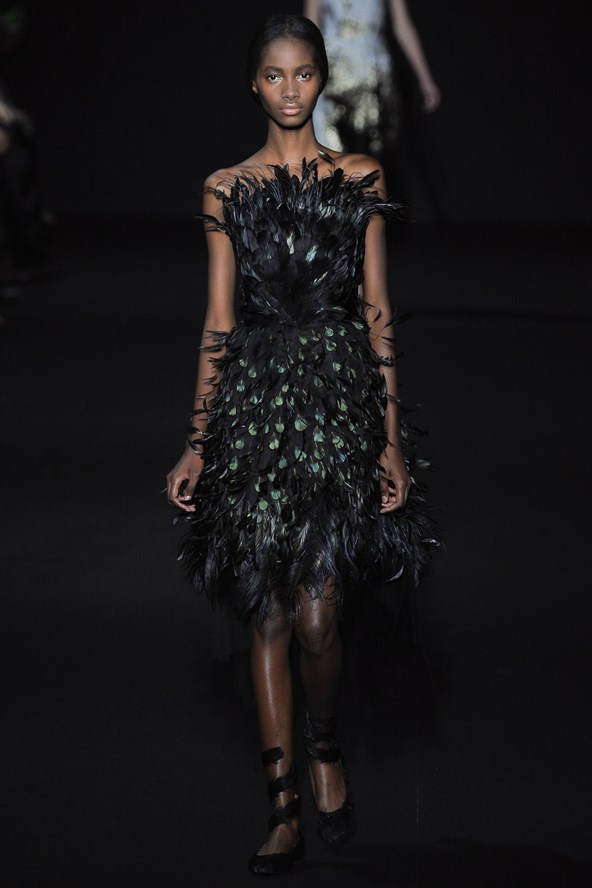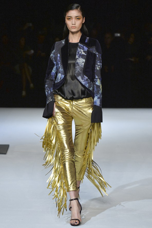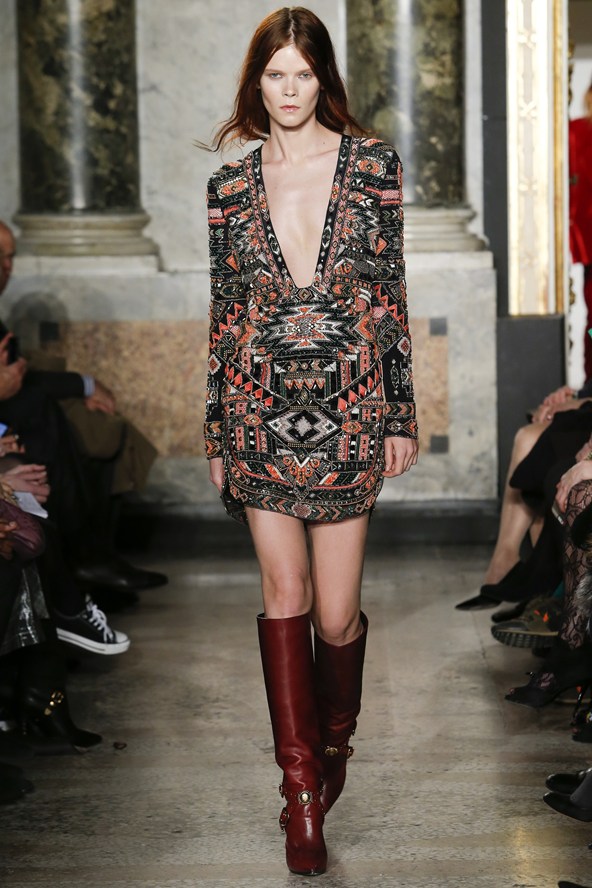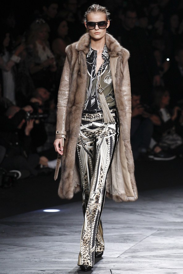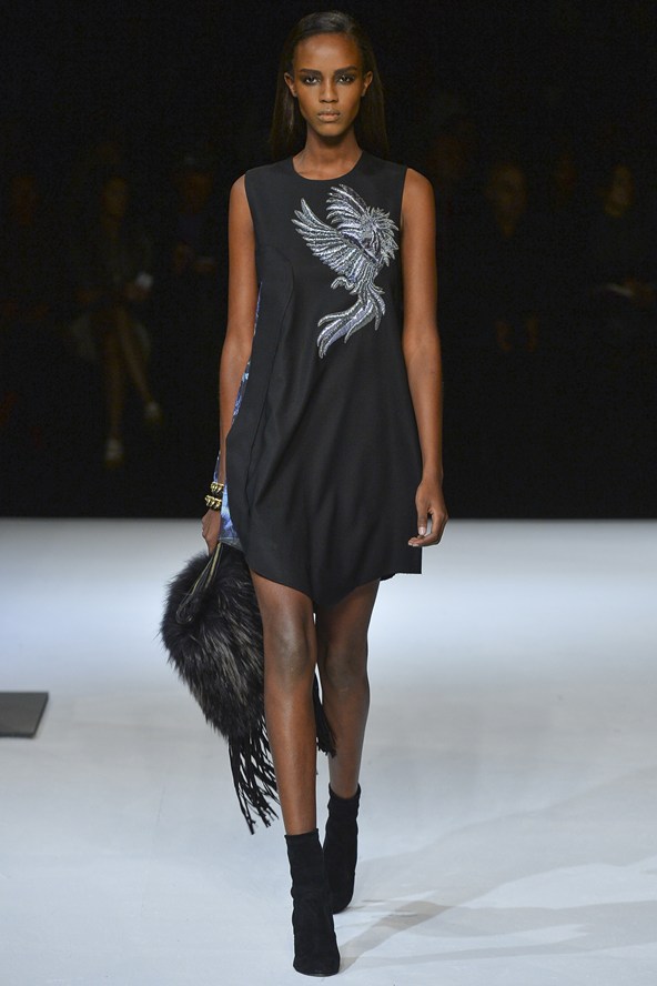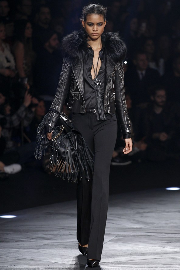 مع مجموعة كافالي بدت النماذج كبريق ناري، إنه أول تصميم لإيفان ميسبيلير، المدير الفني الجديد لدار كافالي للأزياء. المجموعة يسيطر عليها اللون الأسود مع بريق واضح جداً لللّون الأحمر المضيء.