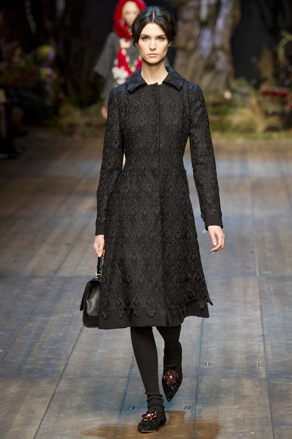 إختتم Dolce & Gabbana أسبوع الموضة في مدينة ميلانو الإيطالية من خلال مجموعة شتوية تحاكي قصص الماضي،عروض قدمتها حسناوات إرتدين عباءات بمعاطف من الطراز القديم ولكن بنفس حديث ومتجدد، بالإضافة إلى فساتين قصيرة تنبض بالحداثة.