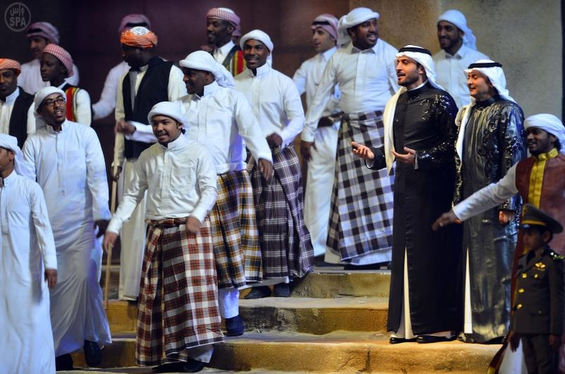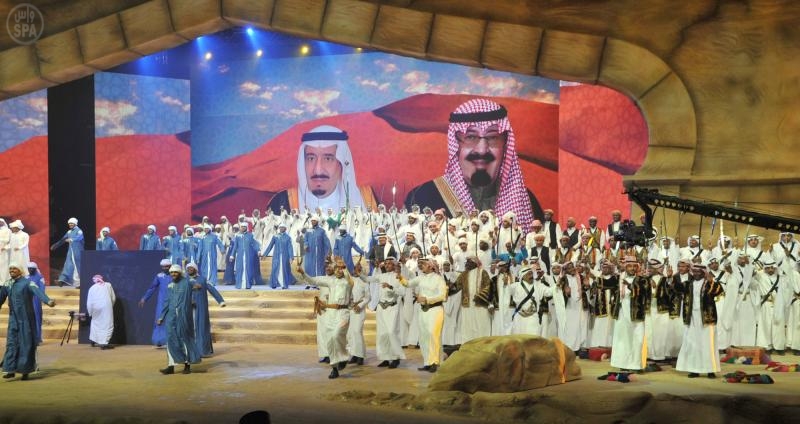 هذا وإمتزجت السياسة بالفنون في افتتاح مهرجان الجنادية، إذ شارك عدد من كبار الفنانين، بينهم محمد عبده وراشد الماجد، في أداء أوبريت حملت عنوان “كوكب الأرض” في حين ألقى الأمير متعب بن عبدالله، وزير الحرس الوطني، كلمة وصف فيها السعوديين بأنهم “شعب أصيل لن يكون عرضة للمساومات” أو بيئة “لأصحاب الأجندات” مشددا على عدم التسامح بما يمسح الدين أو الأرض.