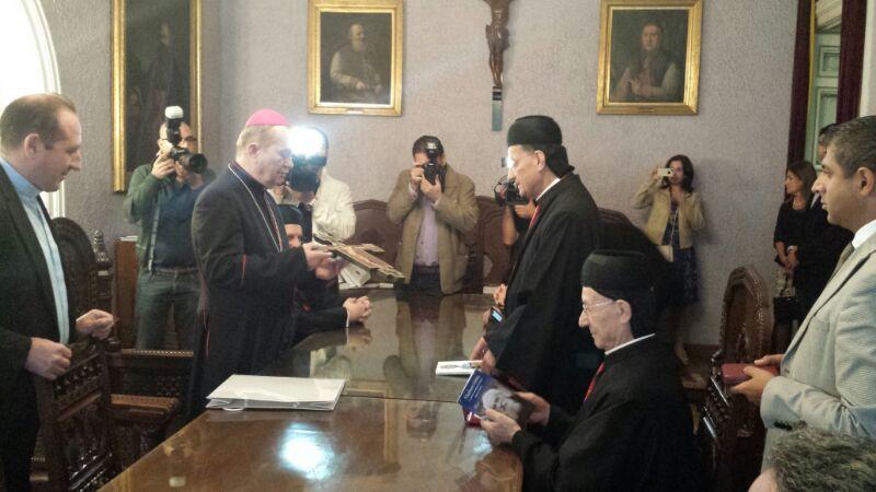 وتابع: “نصلي اليوم مع قداسة البابا بابا فرنسيس لاجل السلام في سوريا في العراق في مصر وفي العالم كله نصلي ايضا لاجل الخلافات والانقسامات لنرمي السلاح ولنعيد بمساعدة المجتمعات العالمية الحل السياسي في الحوار. وجود المسيحية في الشرق الاوسط هو ضروري وحتمي لاجل بشارة محبة المسيح لاعلان انجيل السلام والخلاص ولاجل تعليم وتثقيف المجتمع المحلي. نحن لا نستطيع ان نتجاهل ارض الشرق الاوسط المختارة والمباركة من الله حيث عليها اصبح وتحقق سر خلاص المسيح ومشروع الخلاص ان تصبح ارض العداء، ارض حرب، ارض خصام. بهذا العيد عيد ارتفاع الصليب المقدس نجدد عهدنا التبشيري الرسولي وبهذا نعلن الشكر للاب والابن وللروح القدس”.