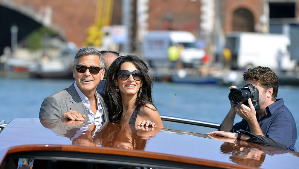 ويتخلى كلوني (53 عاما) عن حياة العزوبية، ويتزوج من علم الدين (36 عاما) في حفل في المدينة العائمة بإيطاليا. وكلوني من مواليد ولاية كنتاكي الأميركية، وفاز بجائزة الأوسكار مرتين. واستقل كلوني وعروسه جندولا في القناة الكبرى،، فيما انتظرت زوارق ترفع الأعلام الزرقاء التي طبع عليها حرفي “أ” و”ج” عند مطار البندقية، لنقل الشخصيات التي تصل مبكرا، ومن بينهم إيلين باركين، التي شاركت كلوني في أحد أفلامه.