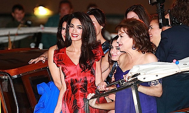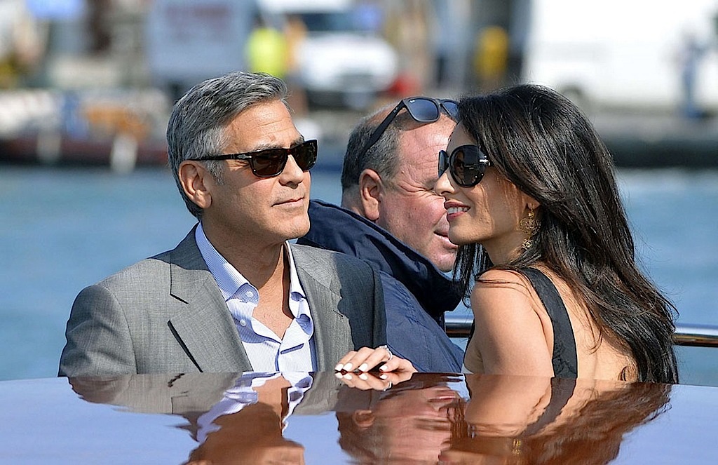 واحتشد السياح وسكان البندقية بعد حلول الظلام على رصيف مجاور لفندق (أمان كانال غراند هوتيل) ذي السبعة نجوم، الذي حجز فيه العروسان لإقامة مراسم الزواج وحفل الاستقبال.وقدم كلوني -الذي كان قد قرر ألا يتزوج مرة أخرى بعد طلاقه عام 1993 من الممثلة تاليا بالسم- وأمل علم الدين، إخطارا قانونيا بشأن نيتهما الزواج في مبنى البلدية غربي لندن في أغسطس، مما اجتذب حشدا من المعجبين دون أن يظهر العروسان.