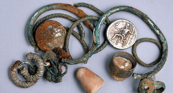 واكتشف متسلقو جبال المجموعة الأثرية الأحدث في صدع ضيق داخل كهف بمنطقة الجليل. وشملت عملتين فضيتين سكتا أثناء حكم الاسكندر وعدة قطع من الحلي الفضية بينها خواتم وأساور وأقراط.