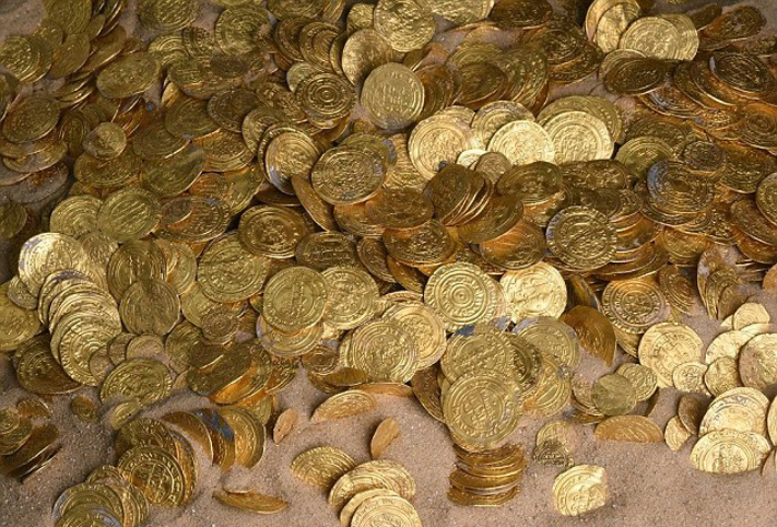 وفي الشهر الماضي عثر غواصون قبالة سواحل إسرائيل على كنز أكبر يضم نحو 2000 عملة معدنية تعود للقرن الحادي عشر يأمل علماء الاثار أن تلقي الضوء على فترة الحكم الإسلامي في ذلك الزمن.