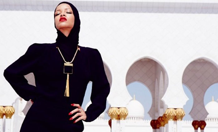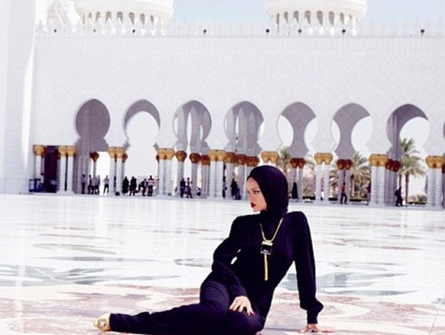 وبعد الحفل الفاشل نشرت ريهانا مجموعة صور لها على حسابها على «انستغرام» امام مسجد الشيخ زايد في أبو ظبي. وظهرت ريهانا محجبة في وضعيات «مثيرة» امام المسجد الامر الذي اثار موجة من التعليقات المؤيدة والمعارضة لفكرة احتشامها من جهة ولفكرة التقاطها صورا مثيرة داخل حرم مسجد.