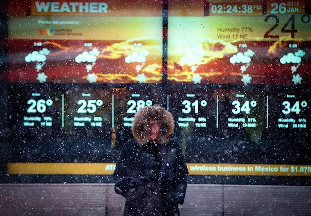 تساقطت الثلوج على الساحل الشرقي للولايات المتحدة امس الاثنين في أول مؤشرات على ما وصفت بانها عاصفة ثلجية “تاريخية” ومن المتوقع ان يصل إرتفاع الثلوج الى قرابة المتر اليوم. وأصدرت الهيئة القومية للأرصاد الجوية يوم الأحد تحذيرا من هبوب عاصفة ثلجية لمدينة نيويورك والمناطق المحيطة بين ساحل نيو جيرزي وكونيتيكت . وحذرت من اجتياح عواصف شتوية للساحل الشرقي من بنسلفانيا إلى مين على مدى يومين.