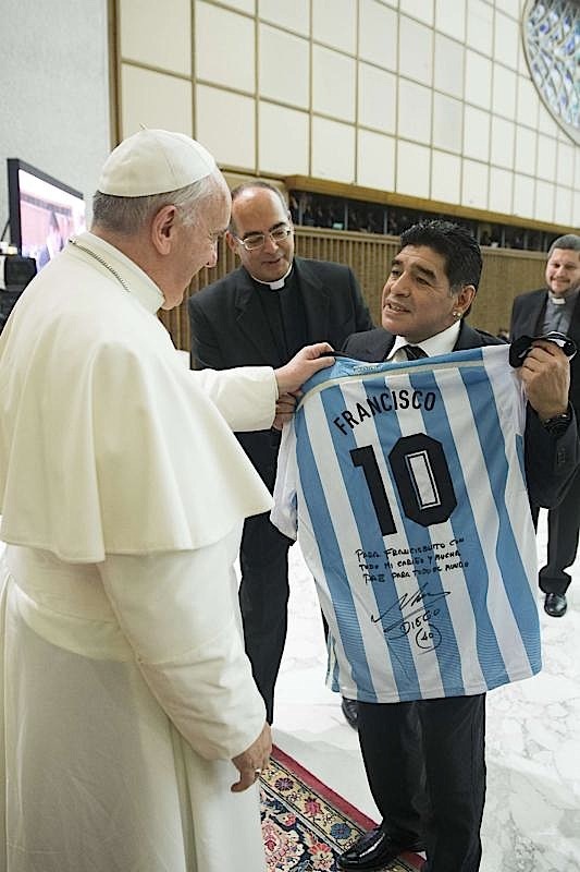 وقال ماراردونا للصحفيين إن البابا كان مصدر الالهام له للعودة إلى التدين بعد سنوات طويلة. وقال “البابا فرنسيس اكبر حتى من مارادونا… ينبغي لنا جميعا ان نقتدي بالبابا فرنسيس. اذا أعطى كل منا شيئا ما لشخص اخر فلن يموت أحد من الجوع في العالم.”