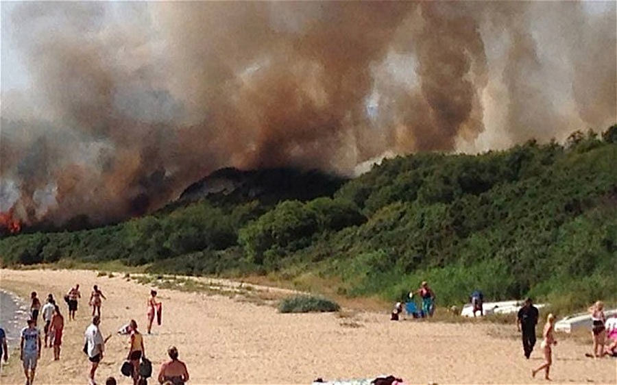 وفي مشاهد غير مألوفة في بريطانيا التي تشتهر ببرودة جوها اشتعلت النيران في العشب والنباتات الجافة مما تسبب في ارتفاع أعمدة من الدخان شوهدت بوضوح على بعد عدة أميال عند المتنزه الأولمبي.