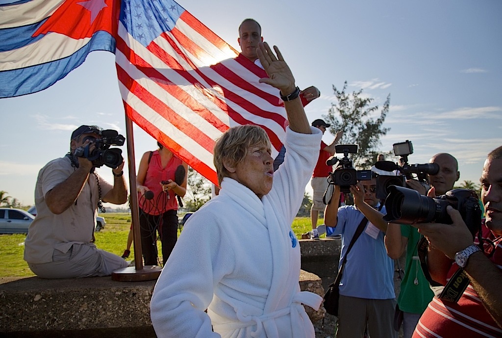 أكملت الاميركية ديانا نياد التي تبلغ من العمر 64 عاما وهي سباحة مسافات طويلة رحلتها عبر مضايق فلوريدا الاثنين لتصبح أول امرأة تسبح من كوبا بدون قفص للحماية من أسماك القرش. ووصلت نياد الى منطقة كي ويست في فلوريدا بعد نحو 53 ساعة من انطلاقها من هافانا لتكمل رحلة امتدت لمسافة نحو 177 كيلومترا.