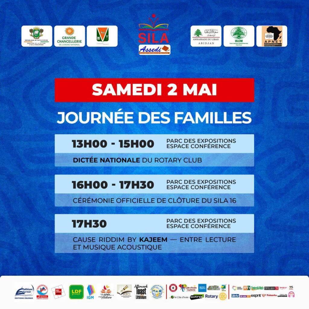 من الواحدة حتى الثالثة بعد الظهر، تُنظَّم مسابقة الإملاء الوطنية برعاية نادي روتاري. ومن الرابعة حتى الخامسة والنصف، يُقام حفل الختام الرسمي للدورة السادسة عشرة. وعند السابعة والنصف مساءً، يختتم المعرض بأمسية موسيقية أكوستيكية مع الفنان كاجيم.